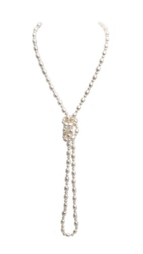 Valero Pearls Collier de perles pour Femme en 925 Argent sterling Perle de culture d`eau douce env. 7,0-8,0 mm Forme grain de riz