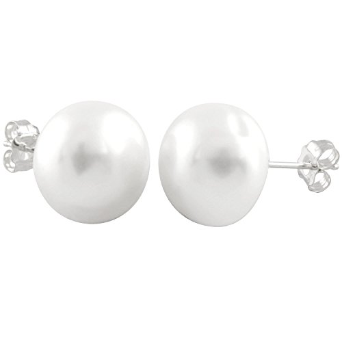 Bella Pearls Femme Argent 925/1000 Plaqué rhodium Argent Bouton Perle d'eau douce chinoise