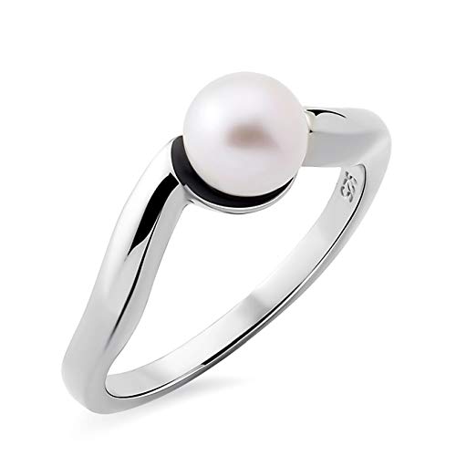 Elli Bague Femme Solitaire avec Perle d'Eau Douce en Argent Sterling 925