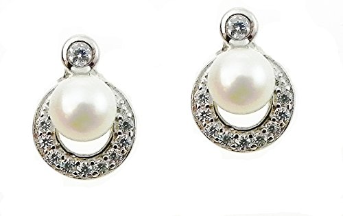 Elli DIAMONDS Boucles d'Oreilles Femmes Perle d'Eau Douce de Culture Diamant (0.03 ct.) en Argent Sterling 925
