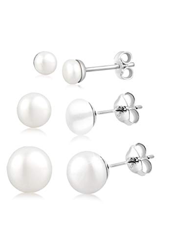 Valero Pearls Clous d'oreilles pour Femme en 925 Argent sterling Perle de culture d`eau douce env. 4,0-6,0 mm Bouton Ensemble de 3