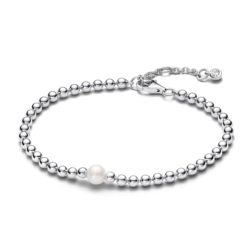 Pandora Timeless Bracelet Sphère en argent sterling avec perle de culture d’eau douce traitée blanche et zircones cubiques transparentes, 16
