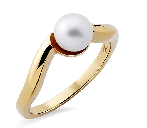 Elli - Bague - Femme - Argent - 925/1000 - Plaqué or - Bague perles - Perle d'eau douce chinoises - T56 - 0611182916_56