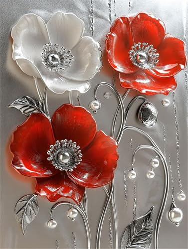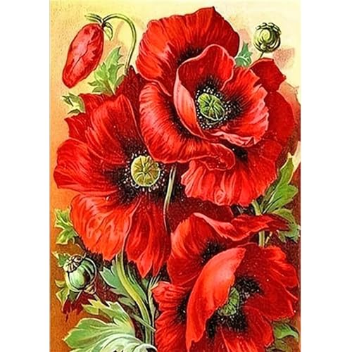 JICFDAO 5D Diamond Painting Fleur Rouge 30x40cm Perles Diamant Coquelicots Diamond Painting Adulte Peinture Diamant Vintage Canevas Kit Complet Artisanal Idéal pour la Décoration et les Cadeaux