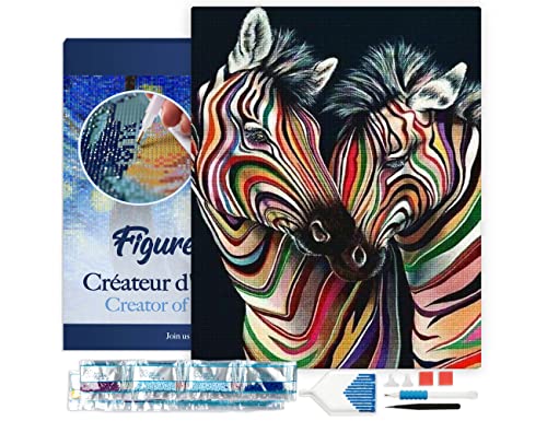 Figured’Art Diamond Painting Broderie Diamant 40x50cm Avec Cadre Toile Tendue Strass Perles Carrés - Couple de Zèbres - Kit Complet Animaux 5D DIY Activité Manuelle Loisirs Créatifs Adultes