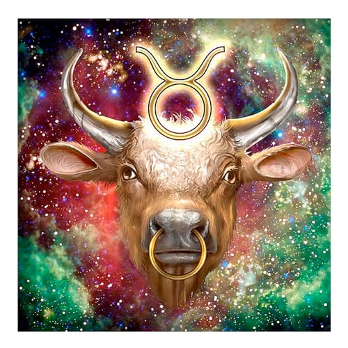 DCIDBEI Peinture Diamant Signe du Zodiaque Taureau 40x40cm Diamond Painting Taureau Zodiaque Peinture Diamant Signes Zodiaque Enfants Filles Perles Diamant Zodiaque Diamond Painting Fluorescent Nuit