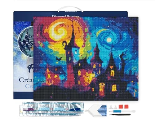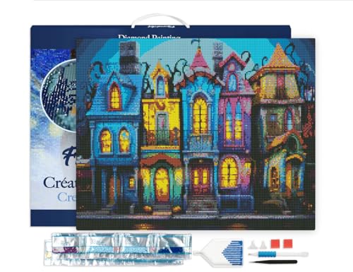 Figured’Art Diamond Painting Broderie Diamant 40x50cm Toile Entière Roulée avec Strass Perles Carrés - Maisons gothiques colorées - Kit Complet 5D DIY Activité Manuelle Loisirs Créatifs Adultes