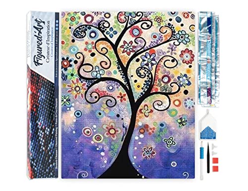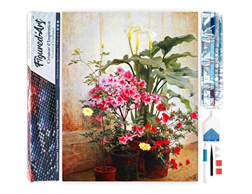 Figured’Art Diamond Painting Broderie Diamant 40x50cm Toile Entière Roulée avec Strass Perles Carrés - Forme de fleurs - Kit Complet 5D DIY Activité Manuelle Loisirs Créatifs Adultes