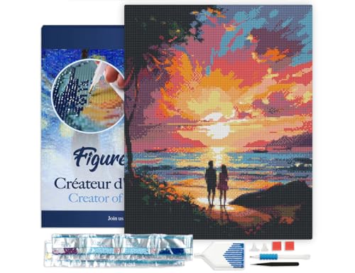 Figured’Art Diamond Painting Broderie Diamant 40x50cm Toile Entière Roulée avec Strass Perles Carrés Couple et coucher de soleil coloré - Kit Complet 5D DIY Activité Manuelle Loisirs Créatifs Adultes