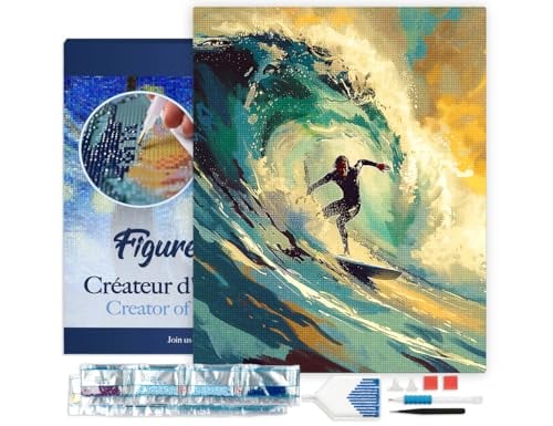 Figured’Art Diamond Painting Broderie Diamant 40x50cm Avec Cadre Toile Tendue Strass Perles Carrés - Surfeuse professionnelle - Kit Complet 5D DIY Activité Manuelle Loisirs Créatifs Adultes