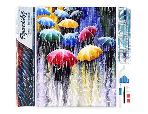 Figured’Art Diamond Painting Broderie Diamant 40x50cm Toile Entière Roulée avec Strass Perles Carrés - Parapluies sous la Pluie - Kit Complet 5D DIY Activité Manuelle Loisirs Créatifs Adultes
