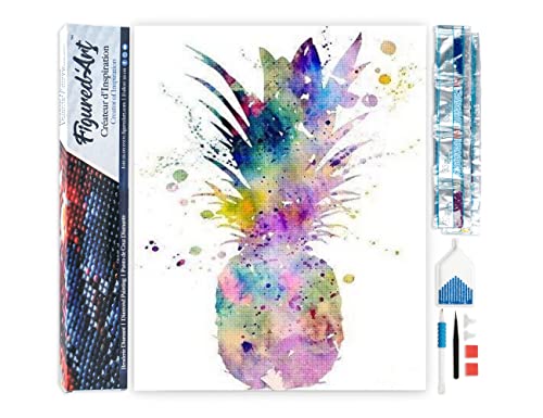 Figured’Art Diamond Painting Broderie Diamant 40x50cm Toile Entière Roulée avec Strass Perles Carrés - Ananas - Kit Complet 5D DIY Activité Manuelle Loisirs Créatifs Adultes