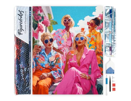 Figured’Art Diamond Painting Broderie Diamant 40x50cm Toile Entière Roulée avec Strass Perles Carrés - Toast des Divas au Jardin - Kit Complet 5D DIY Activité Manuelle Loisirs Créatifs Adultes