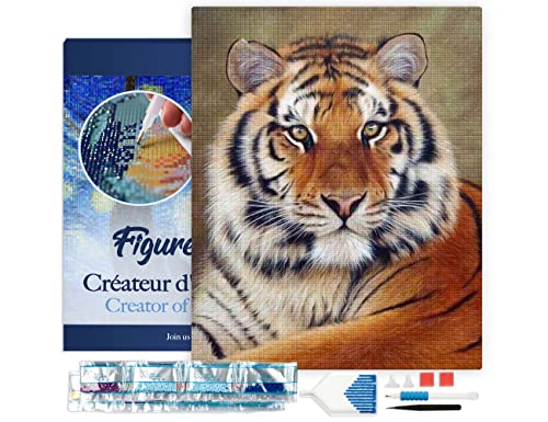 Figured’Art Diamond Painting Broderie Diamant 40x50cm Toile Entière Roulée avec Strass Perles Carrés - Regard de Tigre - Kit Complet Animaux 5D DIY Activité Manuelle Loisirs Créatifs Adultes