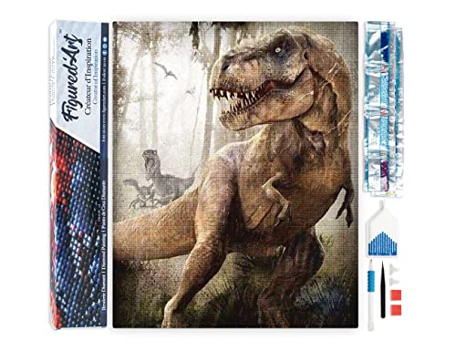 Figured’Art Diamond Painting Broderie Diamant 40x50cm Toile Entière Roulée avec Strass Perles Carrés - Dinosaures Jurassic Parc - Kit Complet 5D DIY Activité Manuelle Loisirs Créatifs Adultes