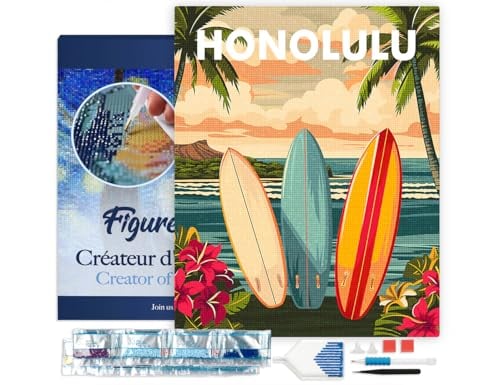 Figured’Art Diamond Painting Broderie Diamant 40x50cm Avec Cadre Toile Tendue Strass Perles Carrés - Affiche de voyage Honolulu - Kit Complet 5D DIY Activité Manuelle Loisirs Créatifs Adultes
