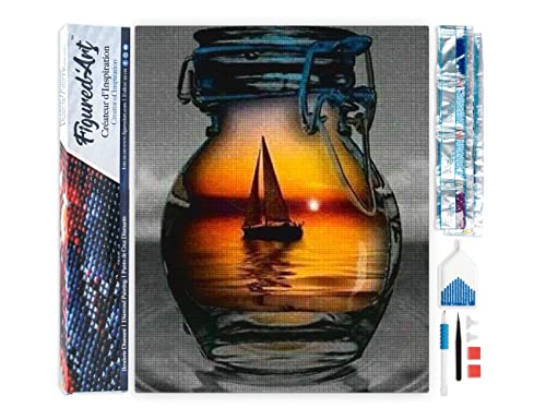 Figured’Art Diamond Painting Broderie Diamant 40x50cm Toile Entière Roulée avec Strass Perles Carrés - Pot et Voilier - Kit Complet Paysage 5D DIY Activité Manuelle Loisirs Créatifs Adultes