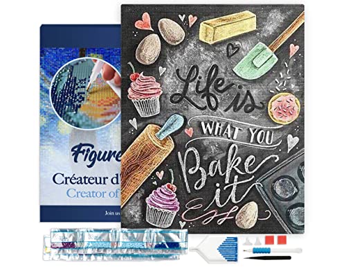 Figured’Art Diamond Painting Broderie Diamant 40x50cm Avec Cadre Toile Tendue Strass Perles Carrés - Affiche cuisine - Kit Complet 5D DIY Activité Manuelle Loisirs Créatifs Adultes