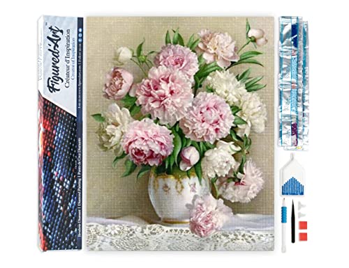 Figured’Art Diamond Painting Broderie Diamant 40x50cm Toile Entière Roulée avec Strass Perles Carrés - Bouquet de Pivoines - Kit Complet 5D DIY Activité Manuelle Loisirs Créatifs Adultes