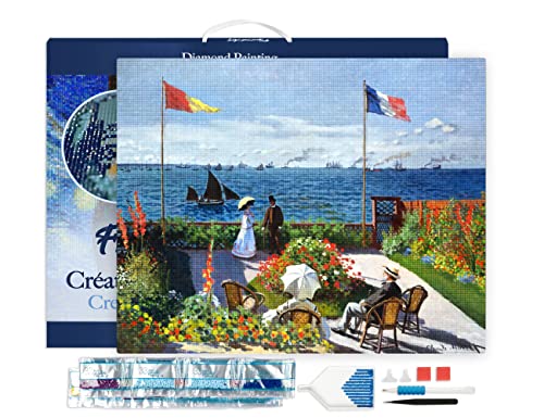 Figured’Art Diamond Painting Broderie Diamant 40x50cm Avec Cadre Toile Tendue Strass Perles Carrés - La terrasse à Sainte-Adresse Monet - Kit Complet 5D DIY Activité Manuelle Loisirs Créatifs Adultes