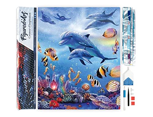 Figured’Art Diamond Painting Broderie Diamant 40x50cm Toile Entière Roulée avec Strass Perles Carrés - Dauphins et fonds marins - Kit Complet Paysage 5D DIY Activité Manuelle Loisirs Créatifs Adultes