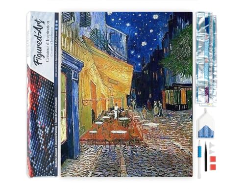 Figured’Art Diamond Painting Broderie Diamant 40x50cm Toile Entière Roulée avec Strass Perles Carrés - Van Gogh Terrasse de Café - Kit Complet 5D DIY Activité Manuelle Loisirs Créatifs Adultes