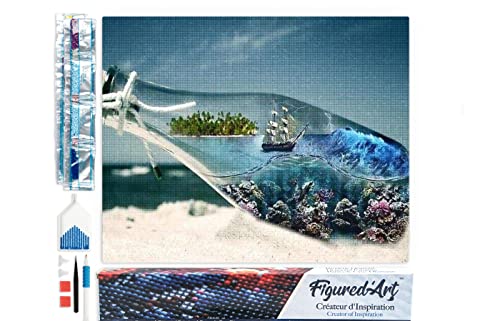Figured’Art Diamond Painting Broderie Diamant 40x50cm Toile Entière Roulée avec Strass Perles Carrés - Bouteille de Mer - Kit Complet Paysage 5D DIY Activité Manuelle Loisirs Créatifs Adultes