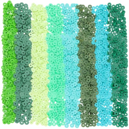 PONABEADIY 1 boîte de 4000 Perles en Argile Polymère de 8 Couleurs Vert et Bleu Mini Heishi Plates Rondes en Vinyle pour la Fabrication de Bijoux Boucles d'oreilles Colliers Bracelets Cordons Loisirs