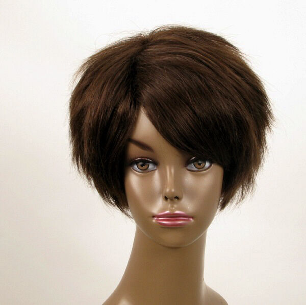 Perruque afro femme 100% cheveux naturel châtain ref WHIT 01/6
