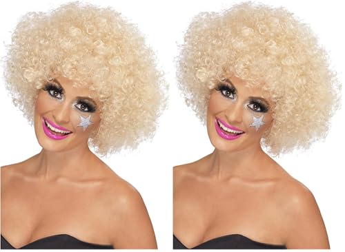 Smiffys Perruque afro funky des années 70, blonde, 120g Halloween (Lot de 2)