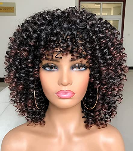 ANNIVIA Perruque afro bouclée avec frange pour les femmes perruques bouclées courtes crépus pour femmes synthétiques résistant à la chaleur perruques afro courtes (brun foncé)