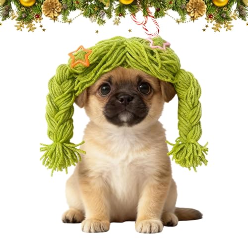 Perruques pour Petits Chiens - Couvre-Chef Mignon à Tresse Douce | Déguisement Perruque Chat Et Chien | pour Chiens Et Chatons Toutes Tailles Maison Photo Jeu De Rôle Halloween Noël Anniversaire