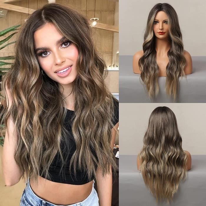 Perruques Femme Ondulées Longues Brunes Bouclées Ombre Brun à Blond Perruque wig