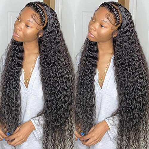 bangjazz Perruques de cheveux humains ondulés avec dentelle frontale HD de 180% - 33 x 10 cm - 61 cm - Perruques bouclées pour femme noire - Pré-épilées avec cheveux de bébé - Ligne de cheveux
