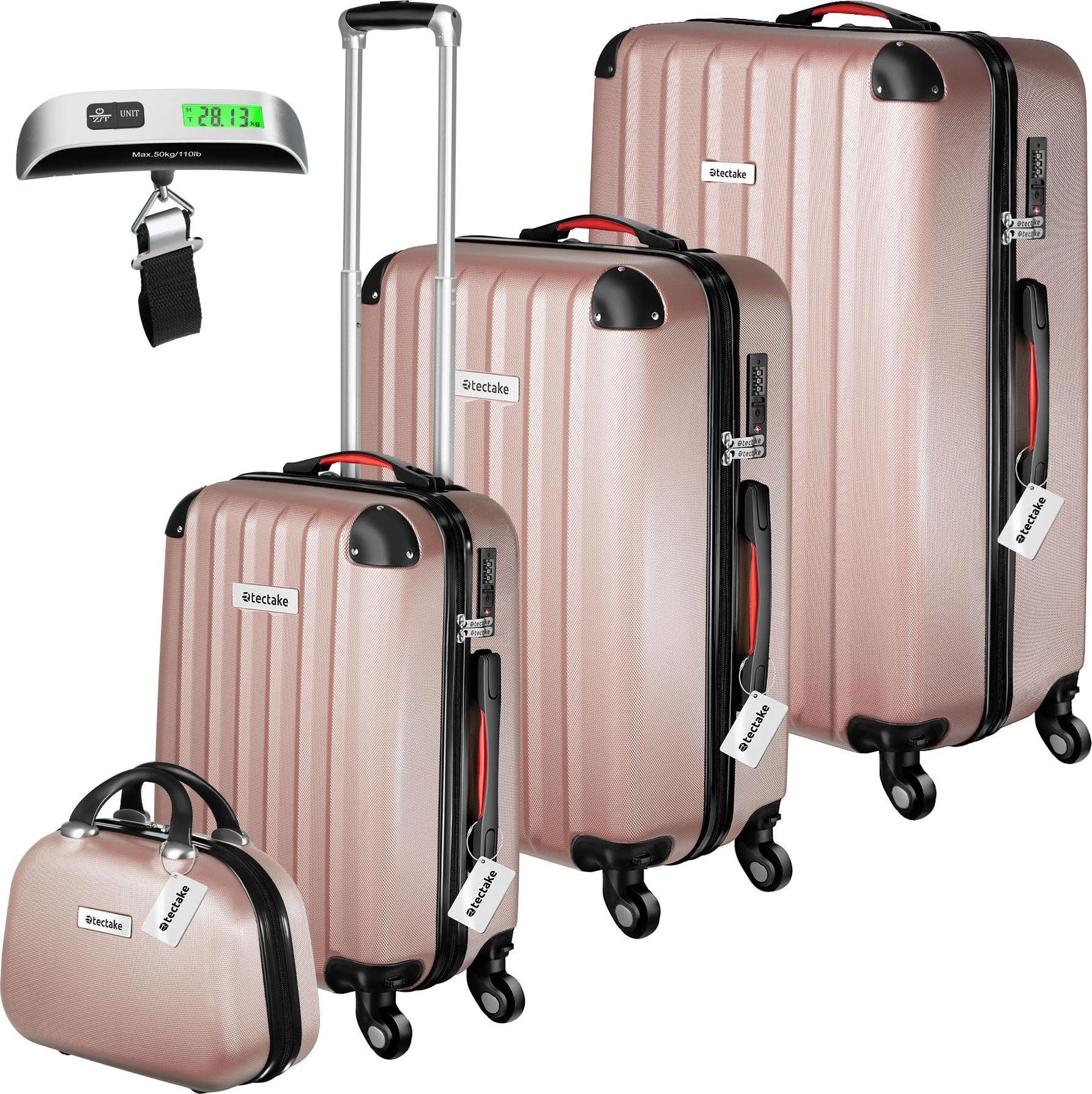 Tectake Set de valises rigides Cleo 4 pièces avec pèse-valise - or rose