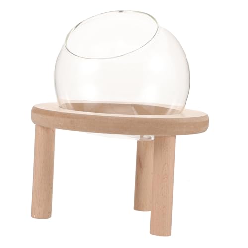 TOYZFRIENDY Bac à Sable pour Hamster Transparent en Verre Fond en Bois, Salle de Bain Ronde de 10 Cm, Accessoire pour Petit Animal de Compagnie, Bain et Jeu Domestique pour Gerbilles