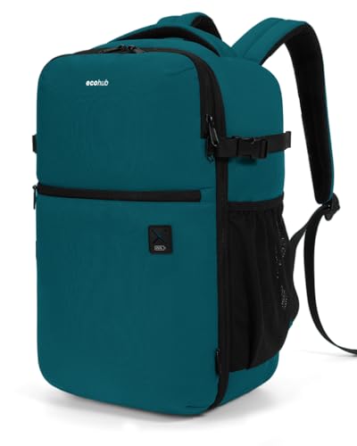 ECOHUB Bagage Cabine 40x20x25 pour Ryanair Sac à Dos Voyage Cabine Avion 40x30x20 Sac à Dos pour Ordinateur 14 Portable, Petit Travel Backpack Homme, Sous le Siège, Recyclable PET, Bleu-vert, 20L