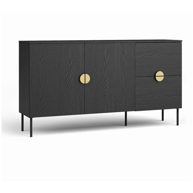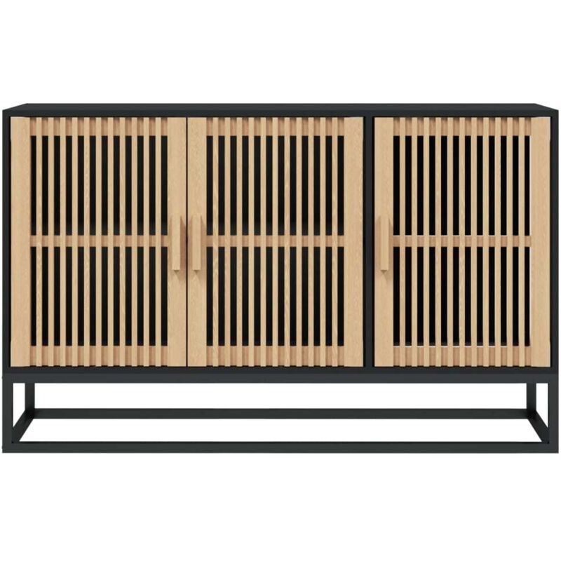 Petit buffet 1 porte et 2 niches – dimensions 80x39x73 cm, couleur chêne et noir – collection savory