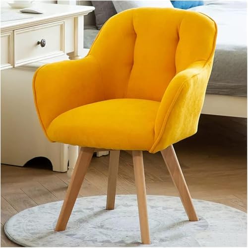 Fauteuil Pivotant Chaise D’appoint en Tissu Chaises De Salle à Manger Chaise De Bureau sans Roues avec Pieds en Bois Robustes pour Petit Espace, Fauteuil en Velours Club Loisirs, Yellow