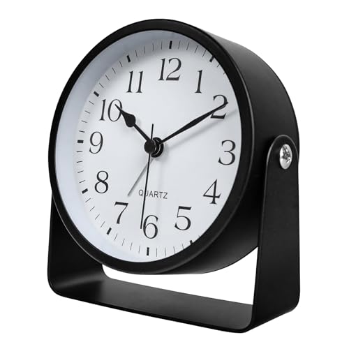 SCOAGE Petit réveil analogique de bureau alimenté par piles - Mini horloge de chevet en métal avec décoration de table d'appoint lumineuse - Réveil mignon du milieu du siècle pour les personnes qui