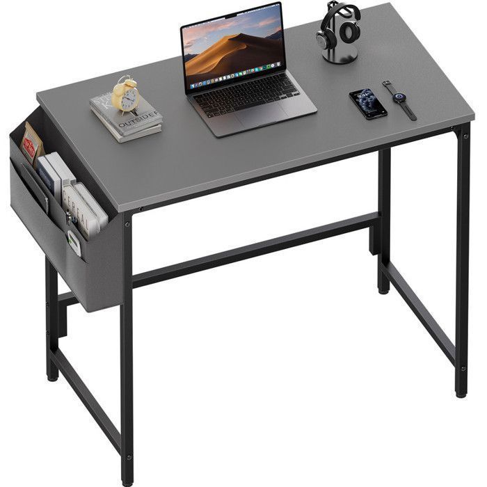 HLONONE 80 cm x 40 cm Petit Bureau Informatique avec Sac de Rangement Structure Métallique pour Chambre à Coucher Gris