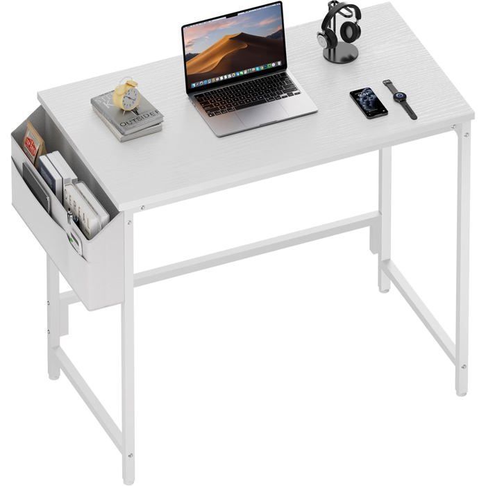 HLONONE 80 cm x 40 cm Petit Bureau Informatique avec Sac de Rangement Structure Métallique pour Chambre à Coucher Blanc