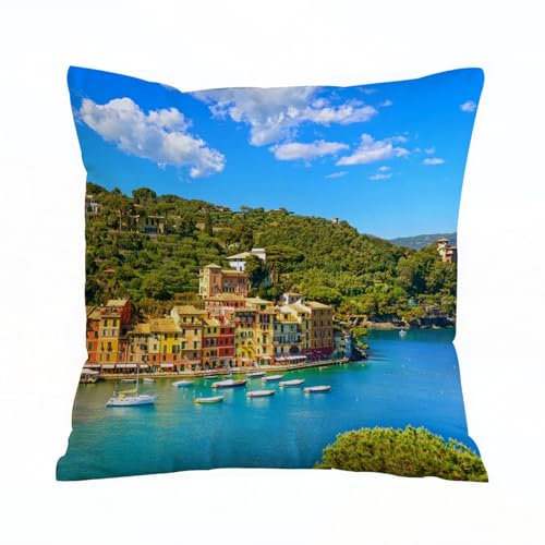 AELKSP Housse Coussin,Vue panoramique aérienne de Luxe de Portofino. Village et Yacht dans Le Petit p,50x50 cm,Lot de Coussin Taie d'oreiller Décoratif Canapé pour Chambre, Canapé, Chaise, Lit,Jardin
