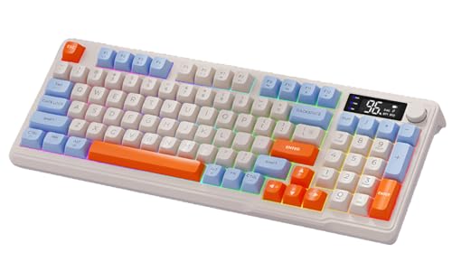 Clavier mécanique sans fil 2,4 G Bluetooth double mode, rétroéclairage de lumière de couleur fraîche, petit affichage numérique, compatible avec Windows/Mac, touches PBT (M96-Shimmer)