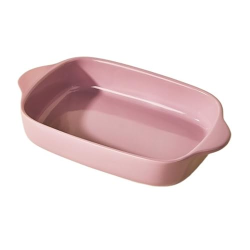 HLHLOP777 Plat à Four Poêle à Double poignée en céramique colorée allant au Four, Micro-Ondes et Lave-Vaisselle. Steak, Riz cuit, Petit-déjeuner Plat à Lasagne(Pink)