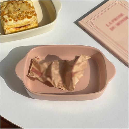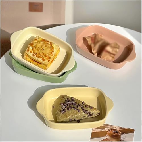 HLHLOP777 Plat à Four Four, Four à Micro-Ondes, Bol de Cuisson, ustensiles Petit-déjeuner créatifs, Grande Assiette Riz cuit au Deux Oreilles en céramique Plat à Lasagne