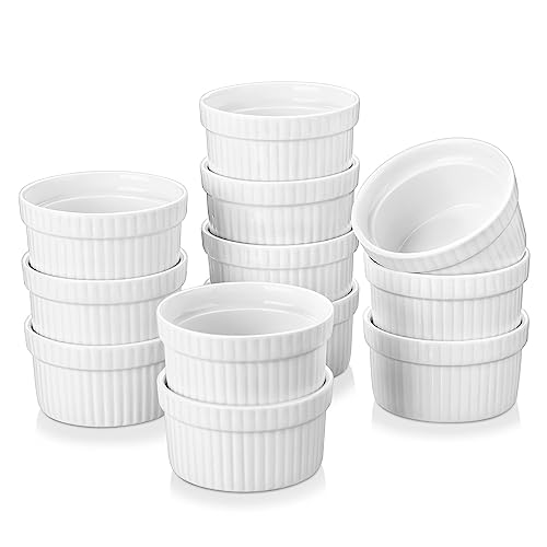 MALACASA Lot de 12 Petit Ramequins Four en Porcelaine, Ramequins Individuels en Céramique pour Soufflés Crème Brulée Muffins Cupcakes Puddings, 55ml, Blanc Ivoire