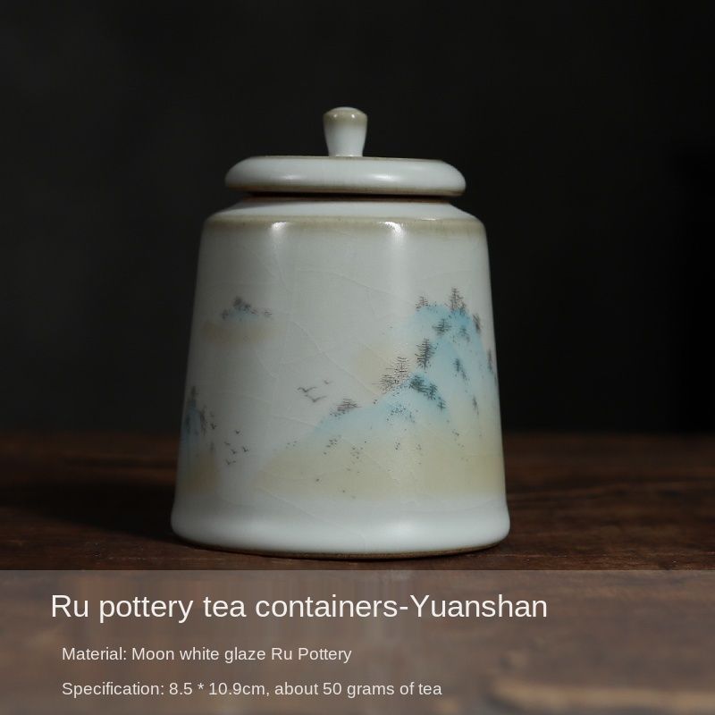 Four Ru Rétro Petit Caddie À Thé En Céramique Scellé Encre Thé, Entrepôt Domestique Ru Poterie Thé Caddie Simple Et Ancienne Couleur