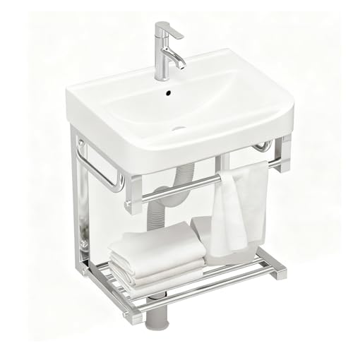IROEJT Lavabo Mural en céramique avec Support en Acier Inoxydable, Petit lavabo Compact pour buanderie, Salle de Bain ou Cuisine, Design Gain de Place pour salles de Bain Modernes