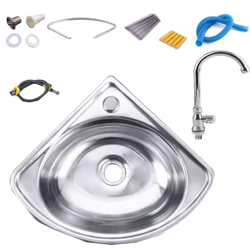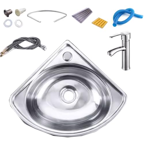 Évier d'angle Mural en Acier Inoxydable, lavabo Simple, lavabo de Cuisine, Petit évier d'angle pour Cuisine, Salle de Bain, lavabo (Couleur : Argent, Taille : Kit#A1)